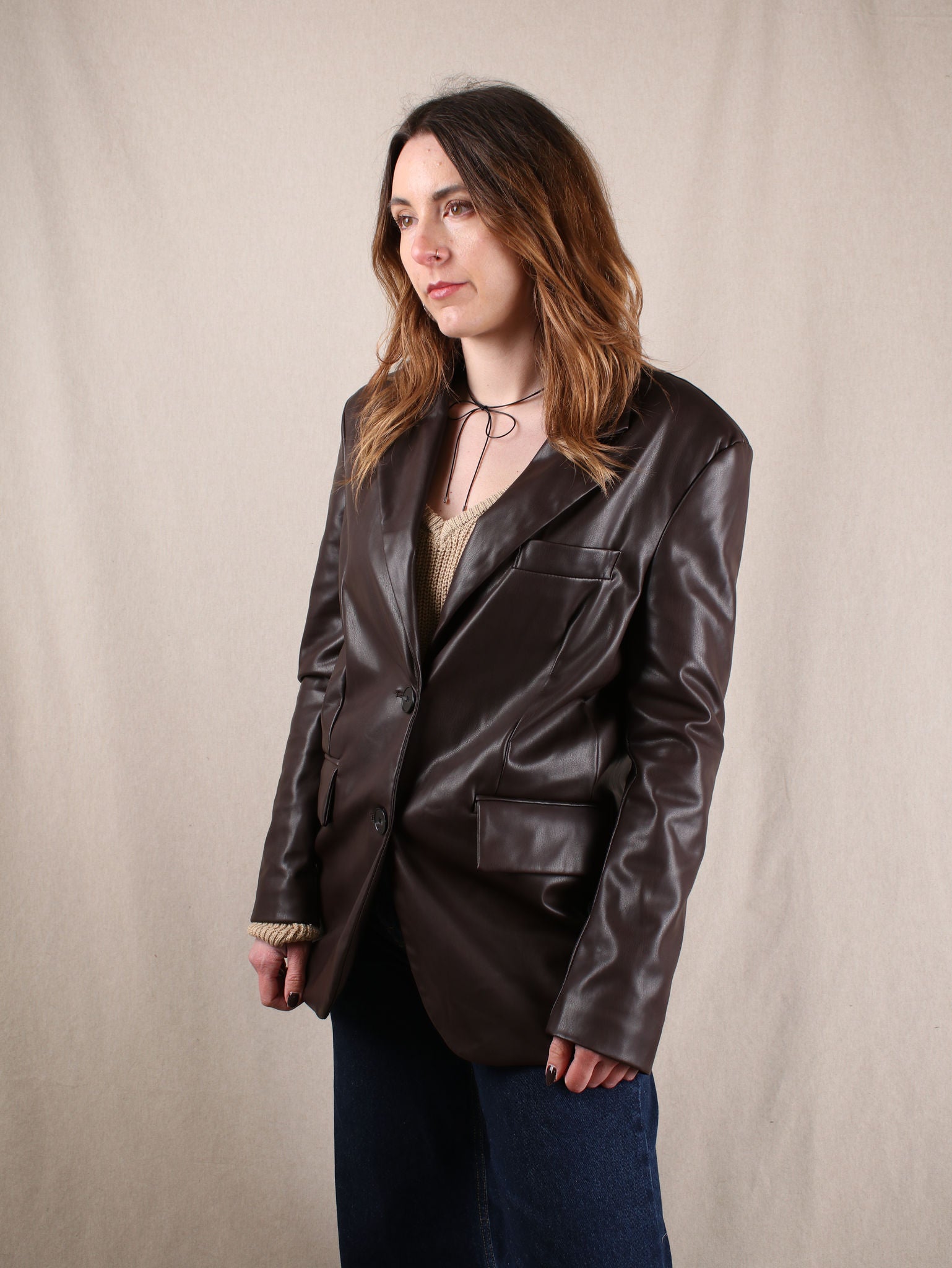 Matrix Vibes – Der Dark Brown Faux Leather Blazer