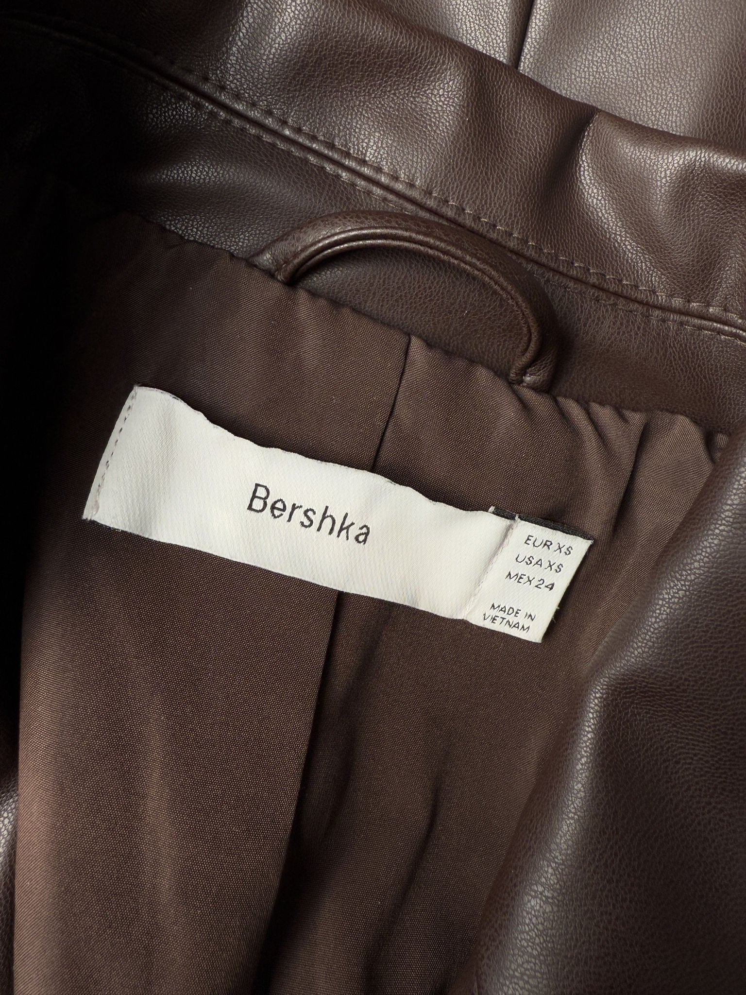 Dieser dunkle Secondhand Kunstleder-Blazer von Bershka bringt den perfekten Mix aus edgy und classy. Mit seiner taillierten Passform und dem butterweichen PU-Material fühlt er sich fast wie echtes Leder an. Ein Power-Piece für coole Office-Looks oder als Statement-Jacke über einem simplen Outfit. Größe XS, aber sitzt leicht oversized für den extra lässigen Touch.