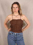 Sexy, edgy und mit Retro-Vibes - dieses Secondhand-Top von Envii bringt 90s-Flair auf ein neues Level. Das geraffte Design aus leichter Viskose-Polyamid-Mischung schmeichelt deiner Figur, während das raffinierte Rücken-Schnürdetail für den Wow-Effekt sorgt. In warmem Mocca-Ton perfekt für coole Layering-Looks oder als Statement-Piece für heiße Nächte