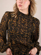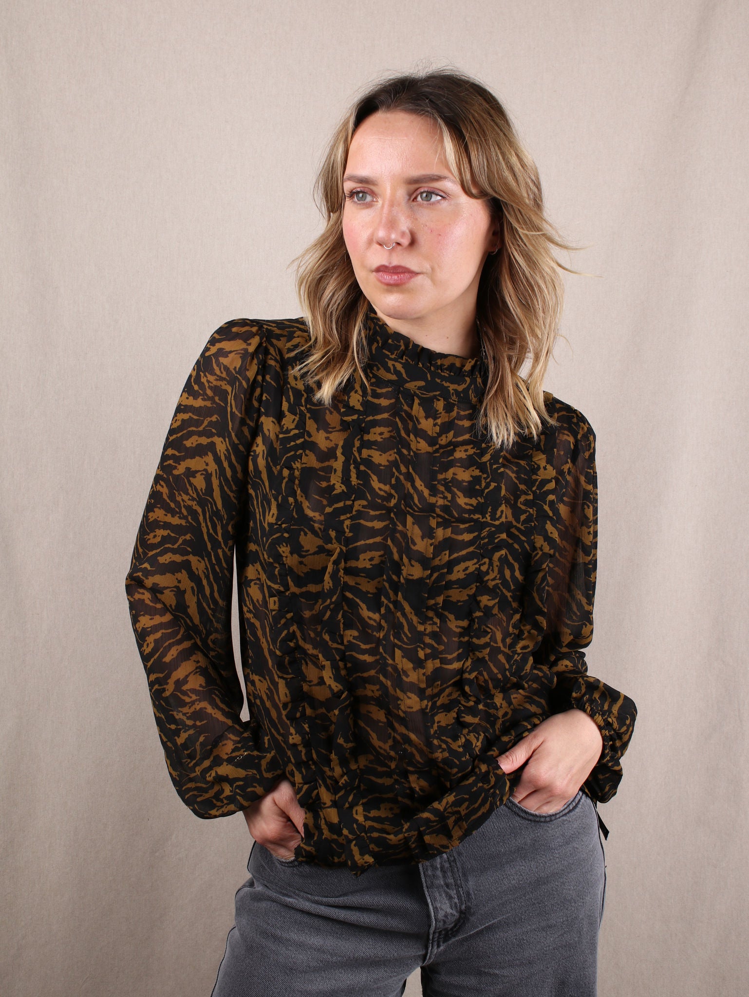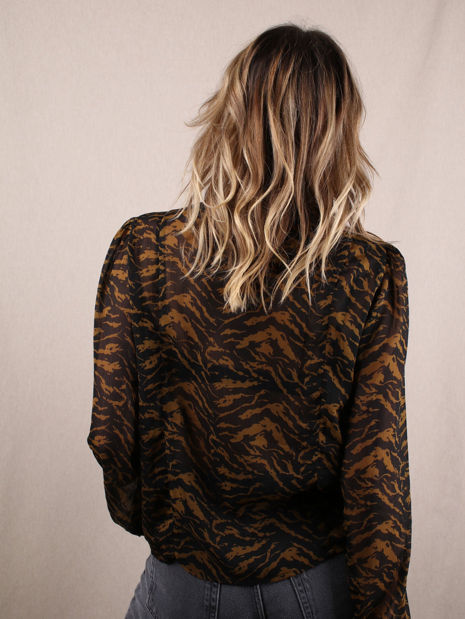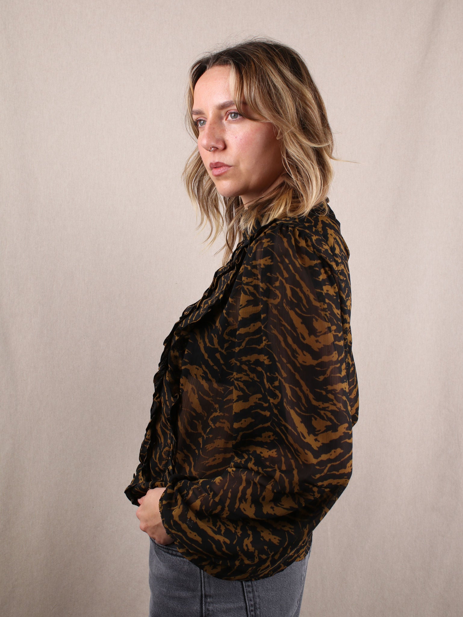 Bluse aus Crêpe mit Zebra-Muster und Rüschen