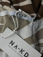 Dieses Kleid von NA-KD kombiniert wilde Eleganz mit modernem Schnitt. Der fließende Stoff aus Polyester schmiegt sich an den Körper und sorgt für einen dynamischen Look, der an die ikonischen Animal-Prints der 70er erinnert. Der tiefe V-Ausschnitt und die betonte Taille machen es zum perfekten Statement-Piece für jede Gelegenheit. Perfekt für Secondhand-Liebhaberinnen, die Vintage-Vibes mit modernem Flair verbinden möchten.