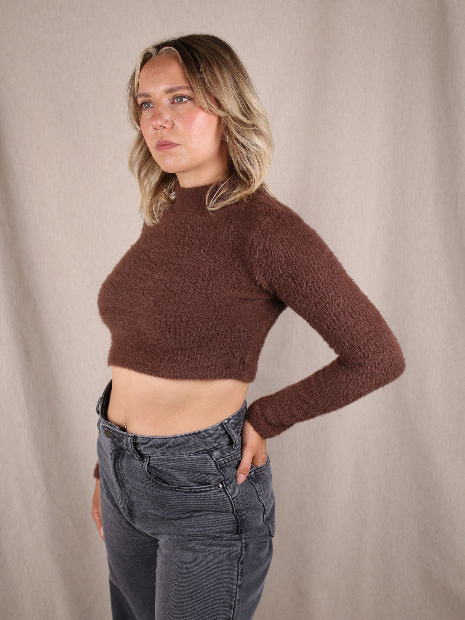 Cropped-Pullover mit Stehkragen