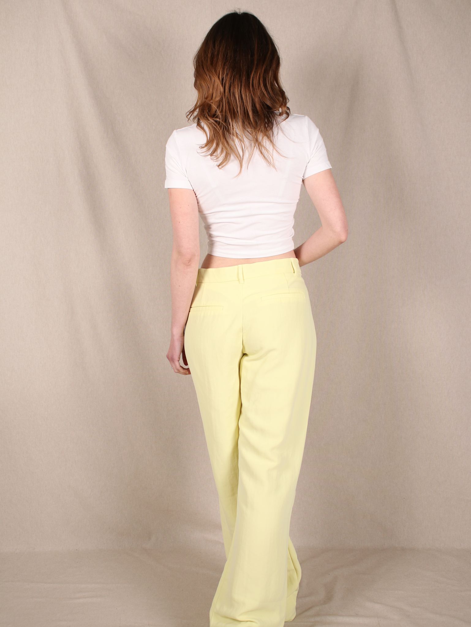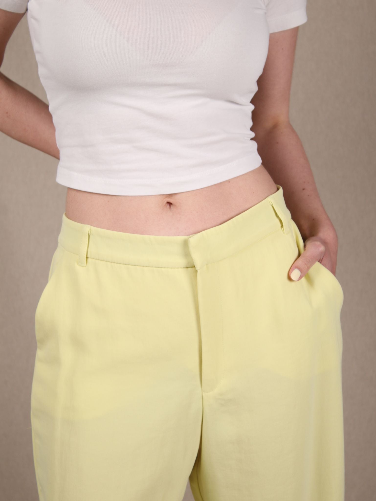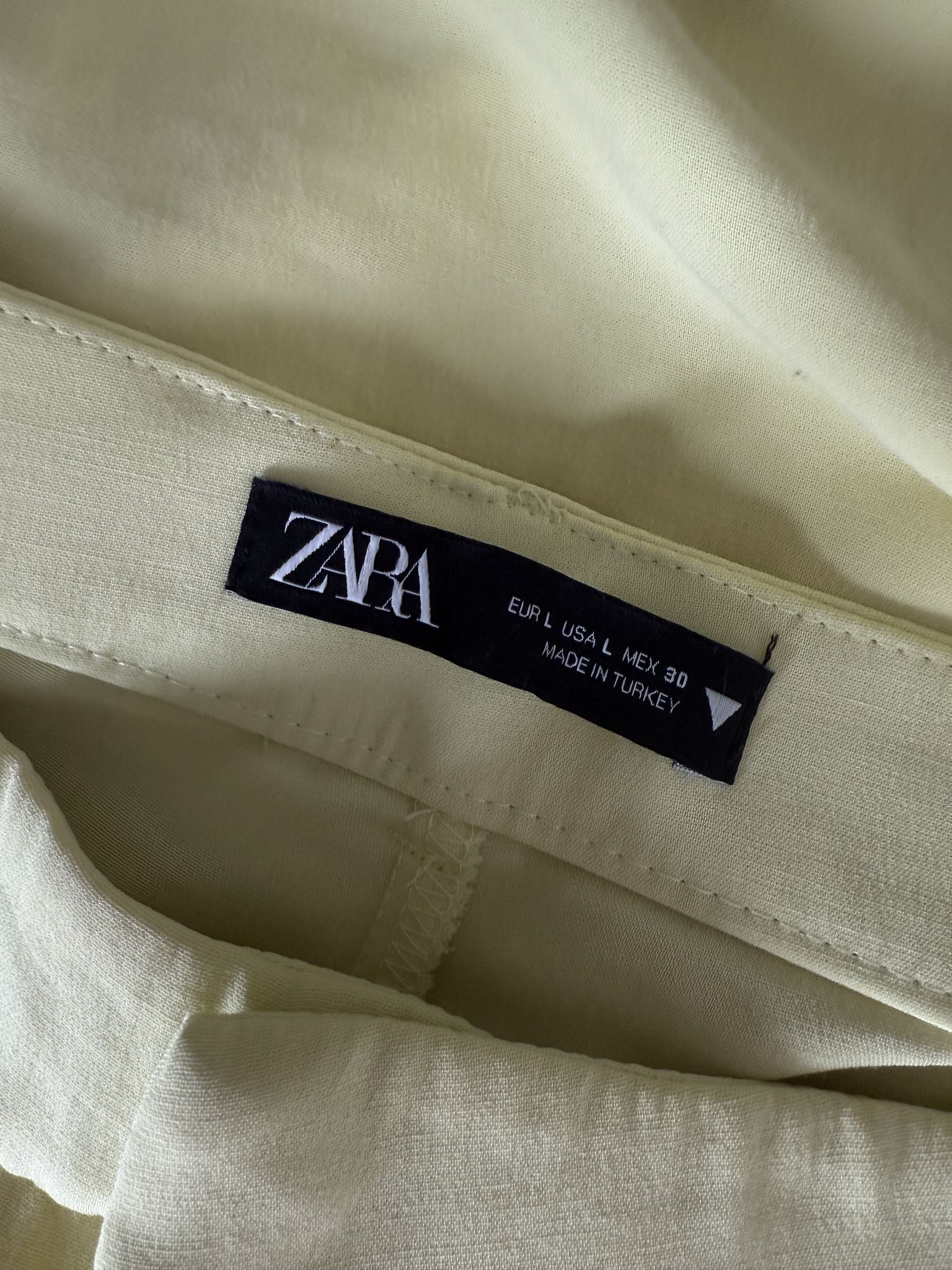Diese fließend geschnittene Hose in zartem Butter Yellow von Zara ist wie Sonnenschein zum Anziehen. Aus softem Crêpe-Material, mit weitem Flare-Leg und hohem Bund - sie zaubert endlos lange Beine und schmeichelt jeder Figur. Ob casual mit Crop Tee oder schick mit Bluse: Dieses Piece bringt frischen Wind in deine Pastel-Palette und lässt jeden Look strahlen.
