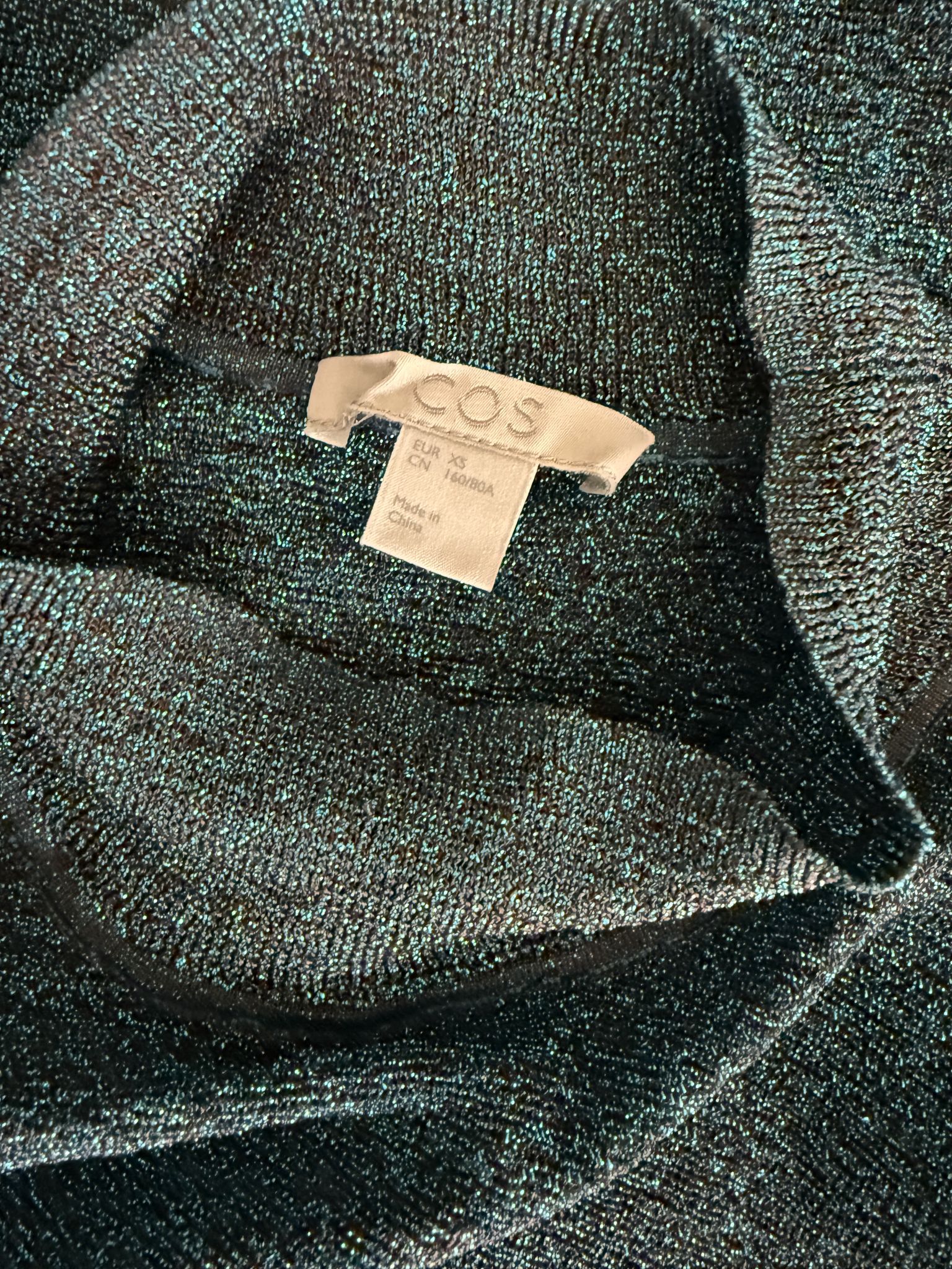 Dieser Secondhand Pullover von COS bringt dezente Festtagsstimmung ohne viel Tamtam. Das blaue Glitzerfinish verleiht deinem Look ein cooles Funkeln, während die normale Passform super entspannt bleibt. Perfekt für alle Xmas Momente, in denen du cosy bleiben willst, aber trotzdem ein bisschen Sternenstaub vertragen kannst.