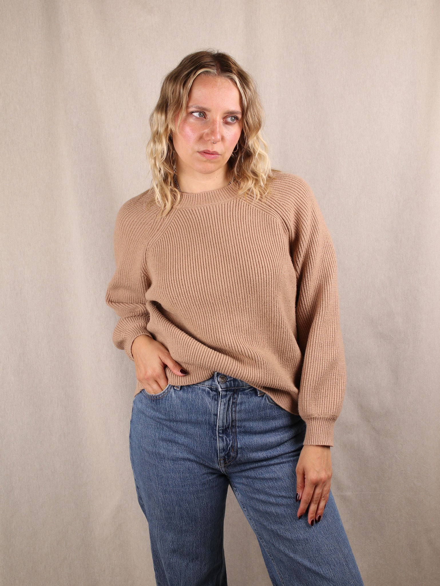 Der Artikel wurde gerne getragen, befindet sich aber weiterhin in gutem Zustand. Kleinere Gebrauchsspuren wie leichtes Pilling oder dezente Reparaturen können vorkommen, auffälligere Mängel listen wir selbstverständlich explizit auf.