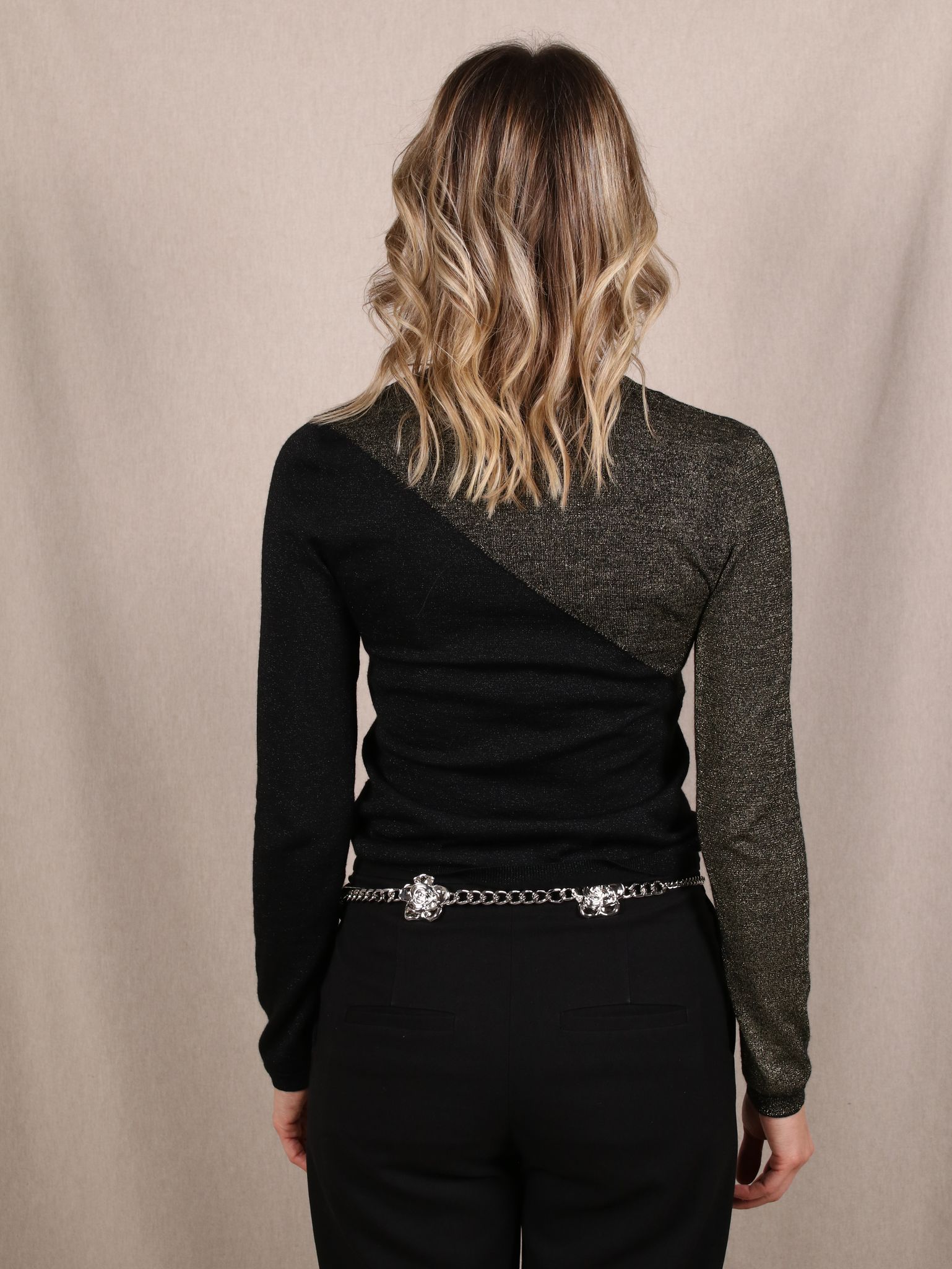 Zweifarbiger Pullover aus Woll-Mix mit Glitzer