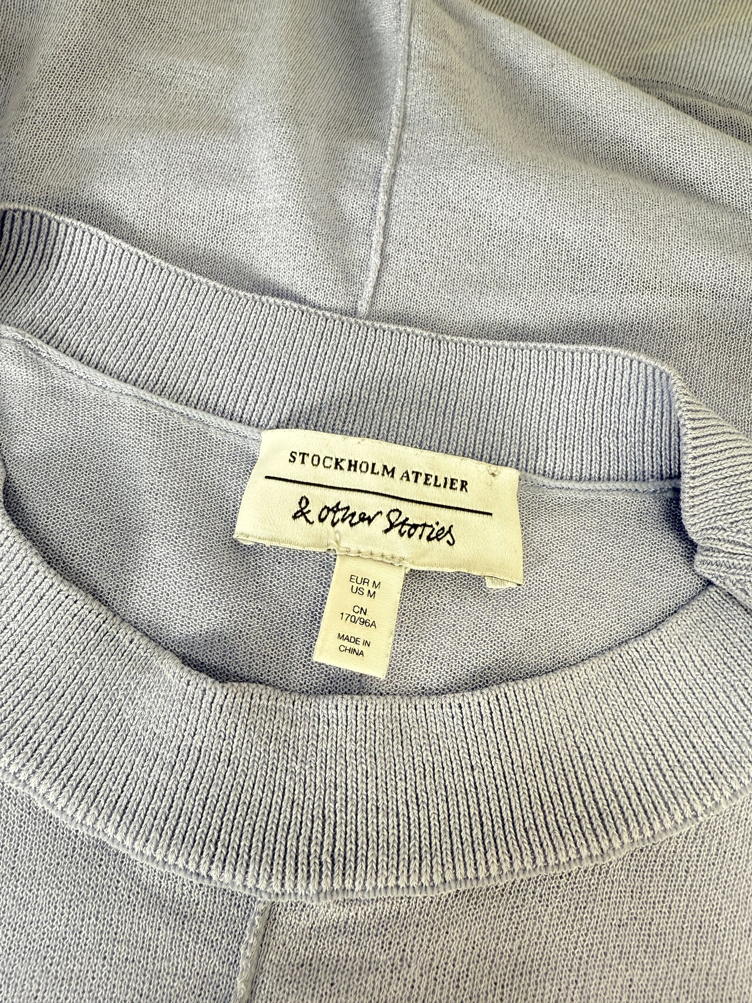Sky Blue Dieser hellblaue Oversize-Pullover von & Other Stories ist ein echtes Preloved-Juwel, das in deiner Garderobe nicht fehlen darf. Aus hochwertigem, leichten Viskose-Mix gestrickt, bietet er dir nicht nur ultimativen Komfort, sondern auch einen Hauch von Luxus. Ein Must-have für alle, die Mode lieben und gleichzeitig nachhaltig denken!