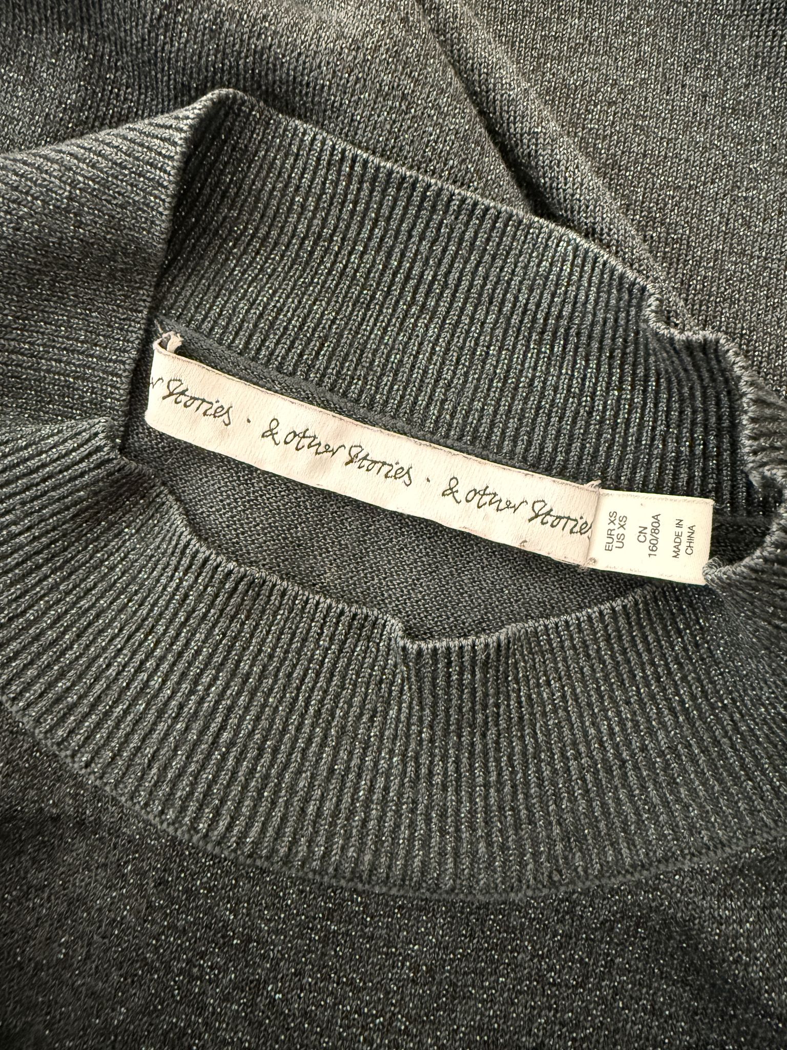 Dieser Secondhand Pullover von & Other Stories bringt dir ein leises, aber sehr stylishes Xmas Funkeln. Das petrolfarbene Glitzergarn wirkt edel und zurückhaltend, während die normale Passform angenehm relaxed bleibt. Perfekt für Tage, an denen du cosy sein willst, aber trotzdem ein bisschen Magie vertragen kannst.