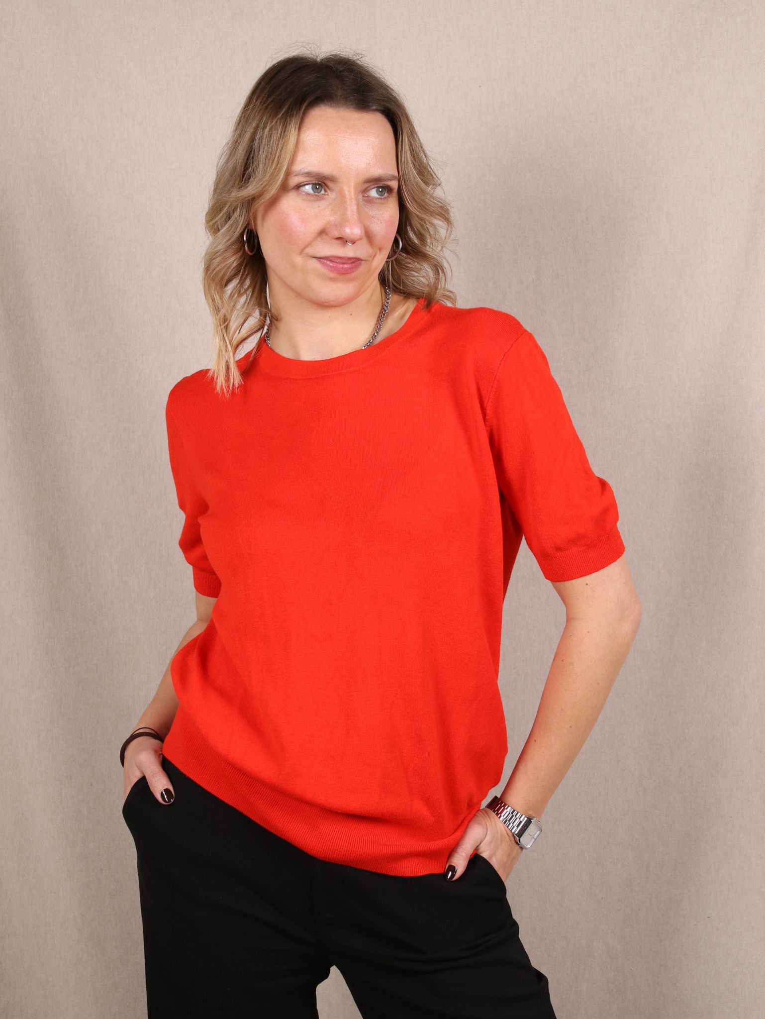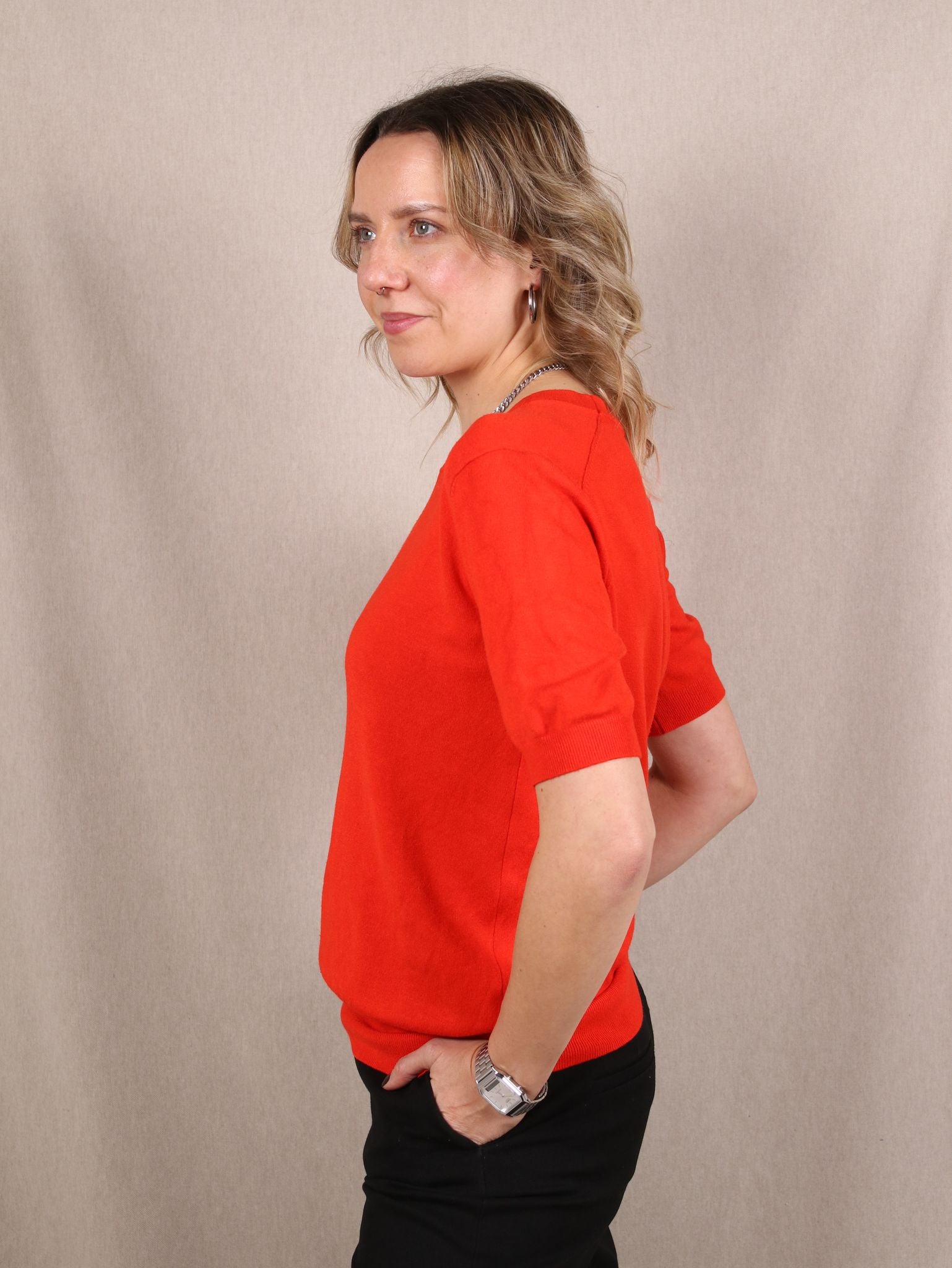 Dieser Secondhand Pullover von Zara bringt Xmas Mood ohne Schnickschnack. Das klare Rot setzt ein starkes Statement, während der Kurzarm-Strick und die normale Passform lässig und modern bleiben. Perfekt für alle, die lieber minimalistisch auftreten, aber trotzdem leuchten wollen.