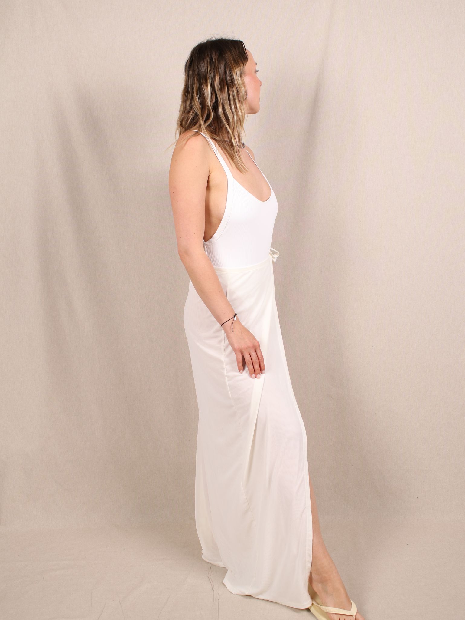 Dieser weiße Wickelrock ist der Inbegriff von Sommerleichtigkeit. Der fließende Stoff, der hohe Beinschlitz und die zarte Bindung machen ihn zum perfekten Piece für Strandtage, Poolpartys oder Sunset-Dinner. Transparent genug für Beach-Vibes, elegant genug für After-Sun-Momente. Und weil’s secondhand ist, fühlt sich der Look doppelt gut an – für dich und den Planeten.