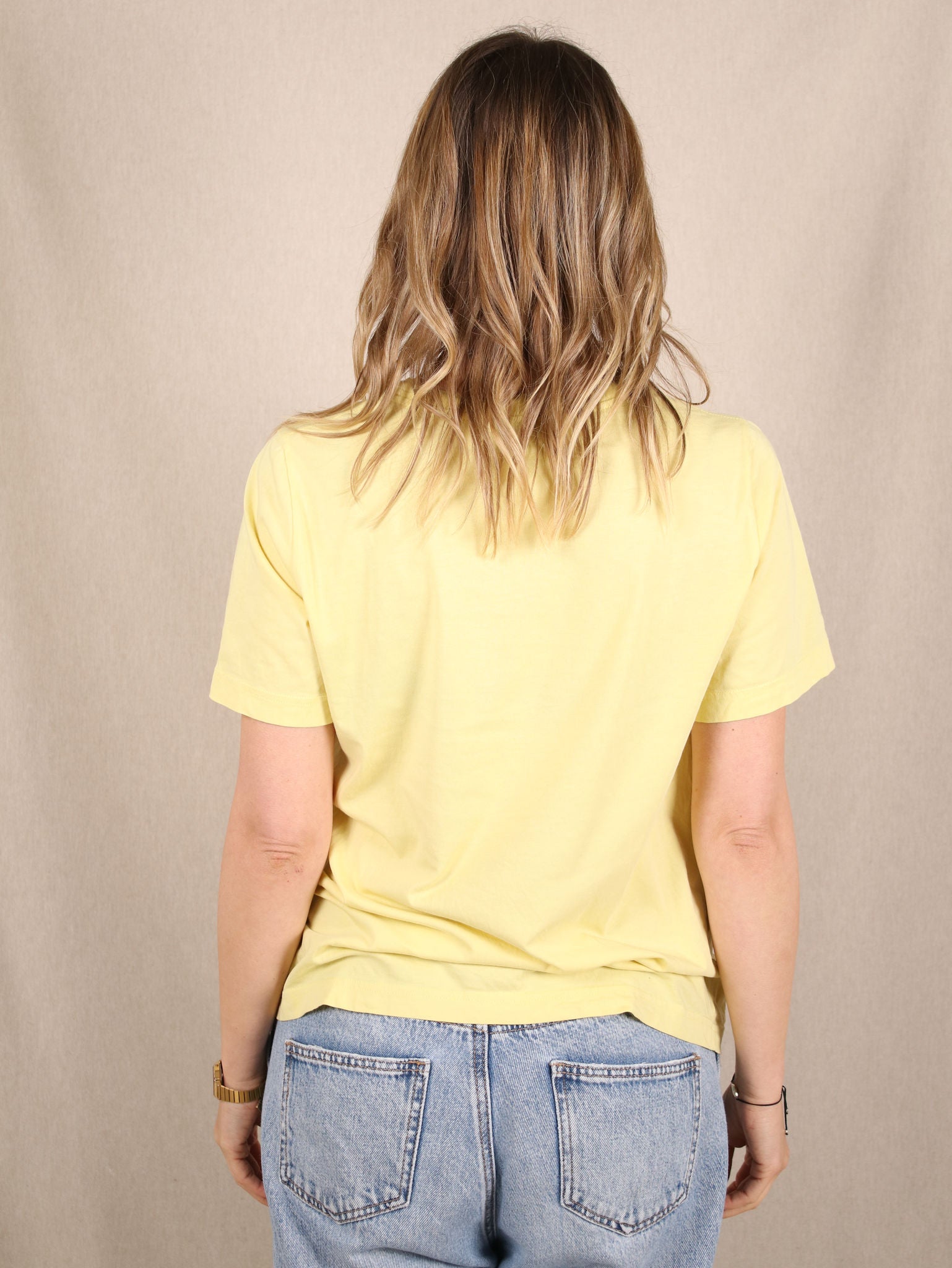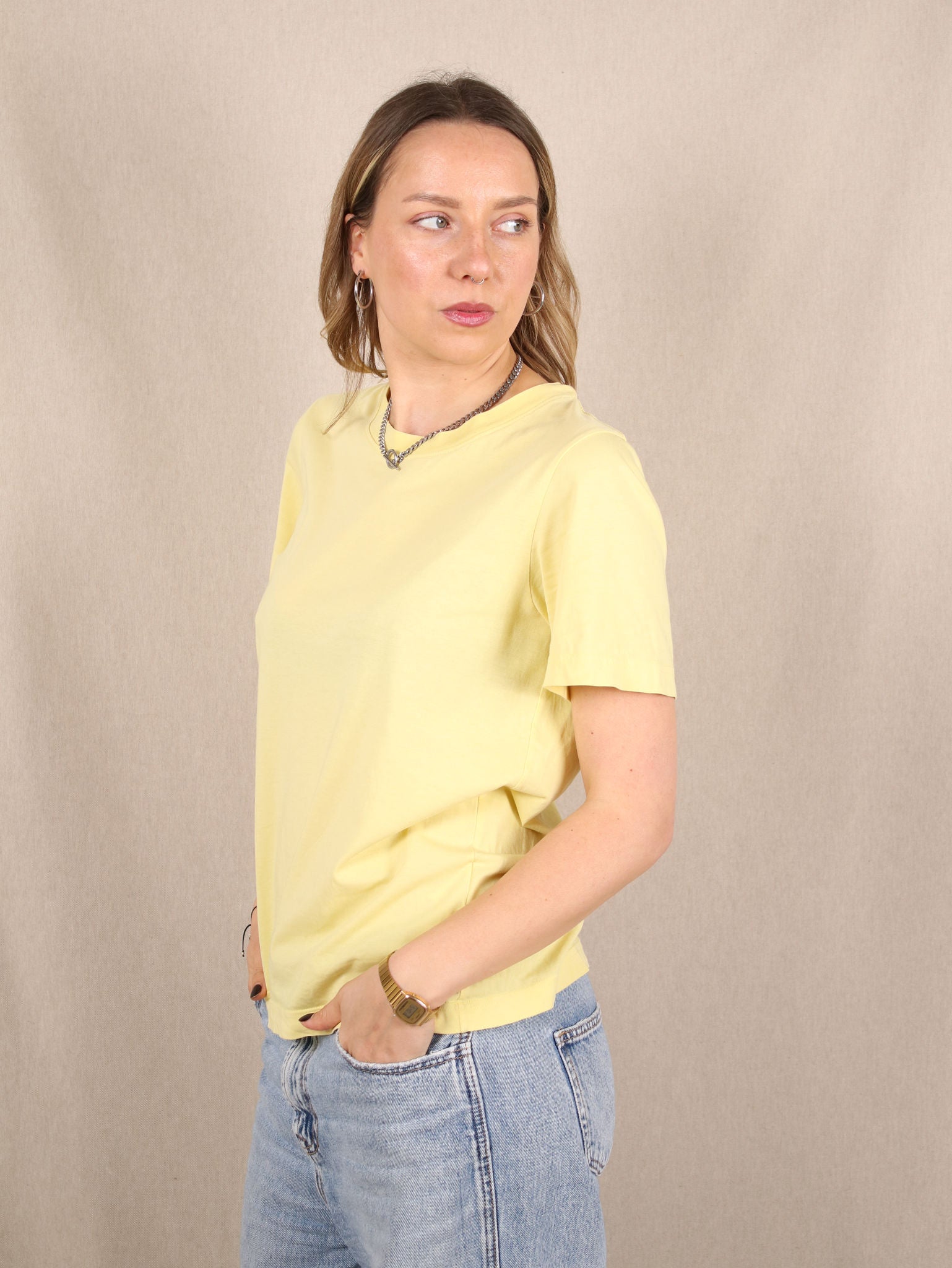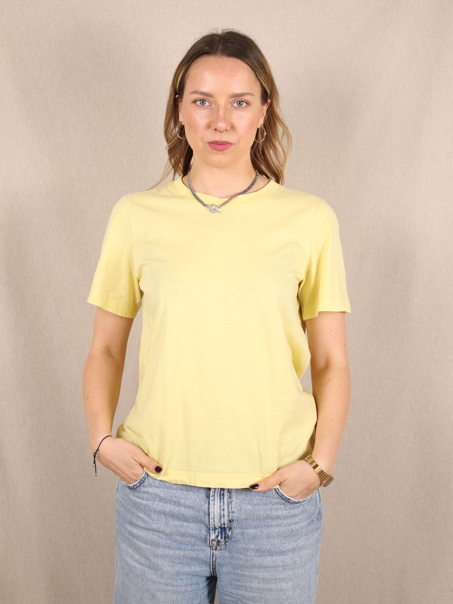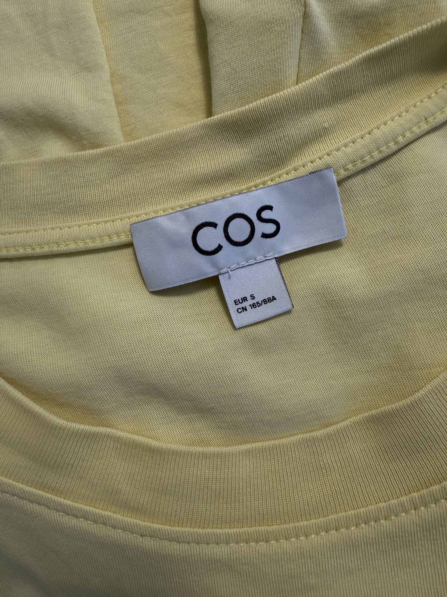 Minimalistisch, hochwertig und unfassbar bequem - dieses Secondhand COS T-Shirt in zartem Butter Yellow ist das perfekte Essential für deinen Kleiderschrank! Der super softe Jersey aus Baumwolle schmiegt sich angenehm an und sorgt für einen zeitlosen Look à la 90s Coolness. Kombiniere es mit Denim oder Layering-Pieces für einen effortless Chic.