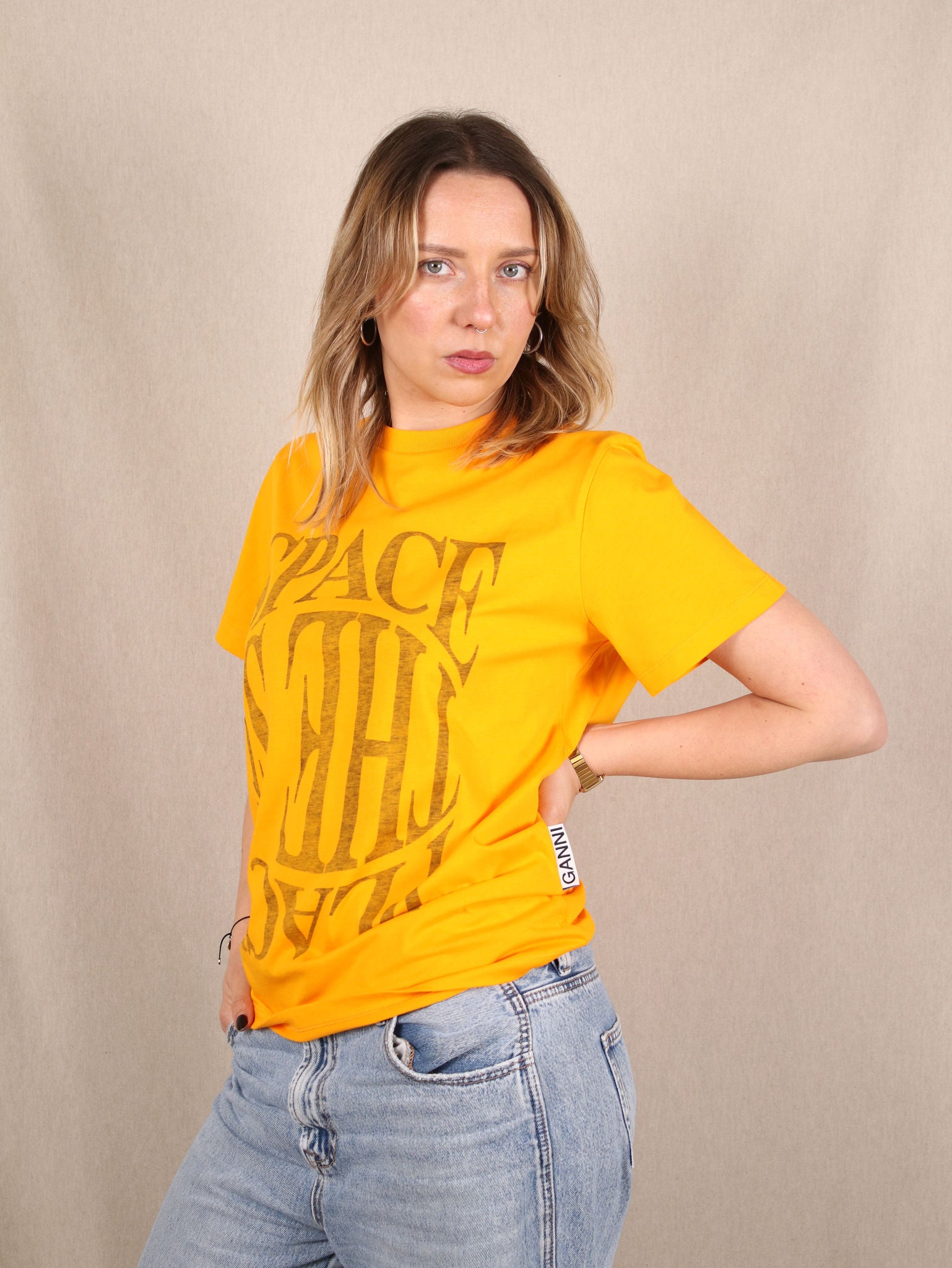 Dieses neuwertige Preloved Statement-Tee bringt galaktischen Vibe in deinen Kleiderschrank! Das Oversize-Design aus 100 % Baumwoll-Jersey sitzt super entspannt und sorgt für einen lässigen Look. Der auffällige Print in warmem Orange setzt ein echtes Style-Statement - perfekt zu Jeans, Biker-Shorts oder Layering-Pieces.