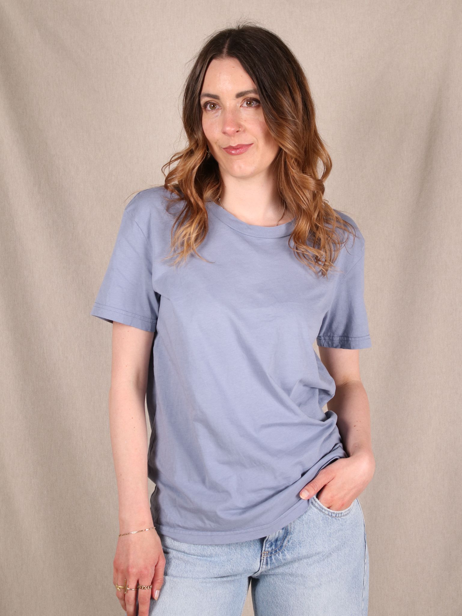 Dieses Secondhand T-Shirt von & Other Stories ist dein Everyday-Essential: locker geschnitten, aus weichem Jersey und in entspanntem Blauton. Easy zu kombinieren – perfekt für chillige Fisherman-Vibes oder einfach zum Lieblingsjeans-Combo.