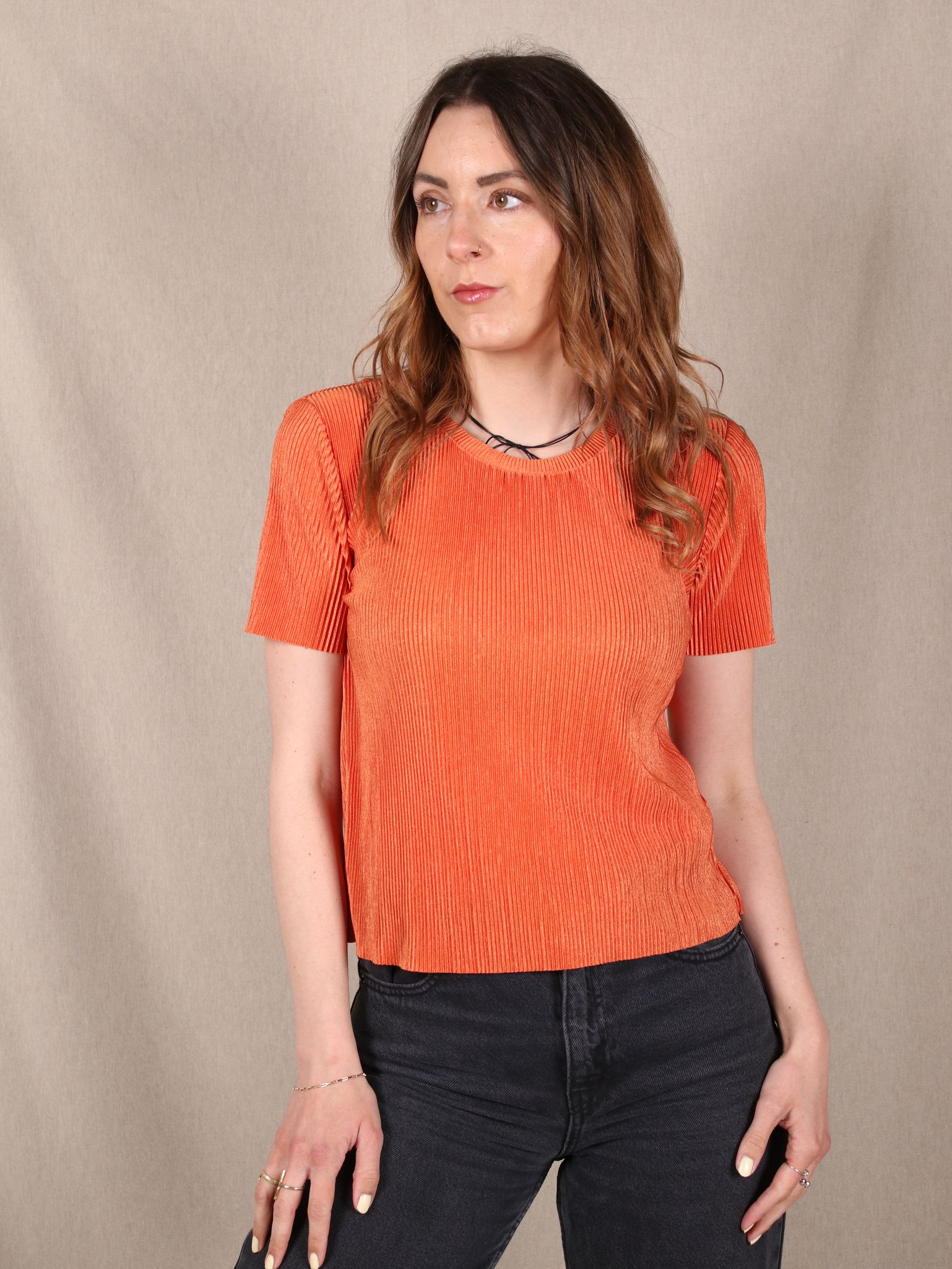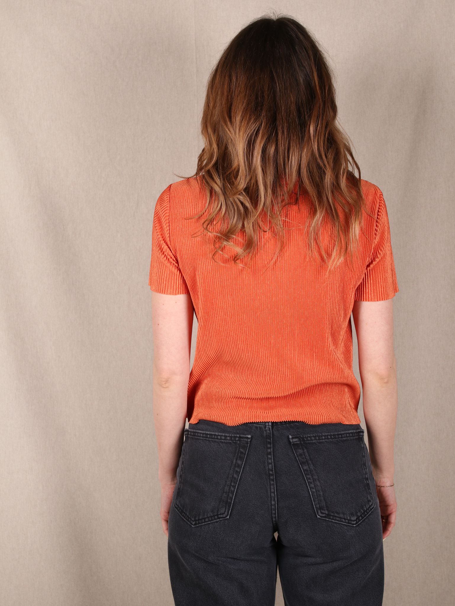 Dieses Plissee-Shirt von & Other Stories in kräftigem Orange ist dein Go-to für lässige Tage mit Wow-Effekt. Die leichte Struktur bringt Bewegung ins Spiel, der lockere Schnitt sorgt für Komfort - perfekt zu High-Waist-Jeans, fließenden Röcken oder deinem liebsten Vintage-Denim. Ideal, wenn du Lust auf ein bisschen Farbe hast, aber nicht auf Style verzichten willst.