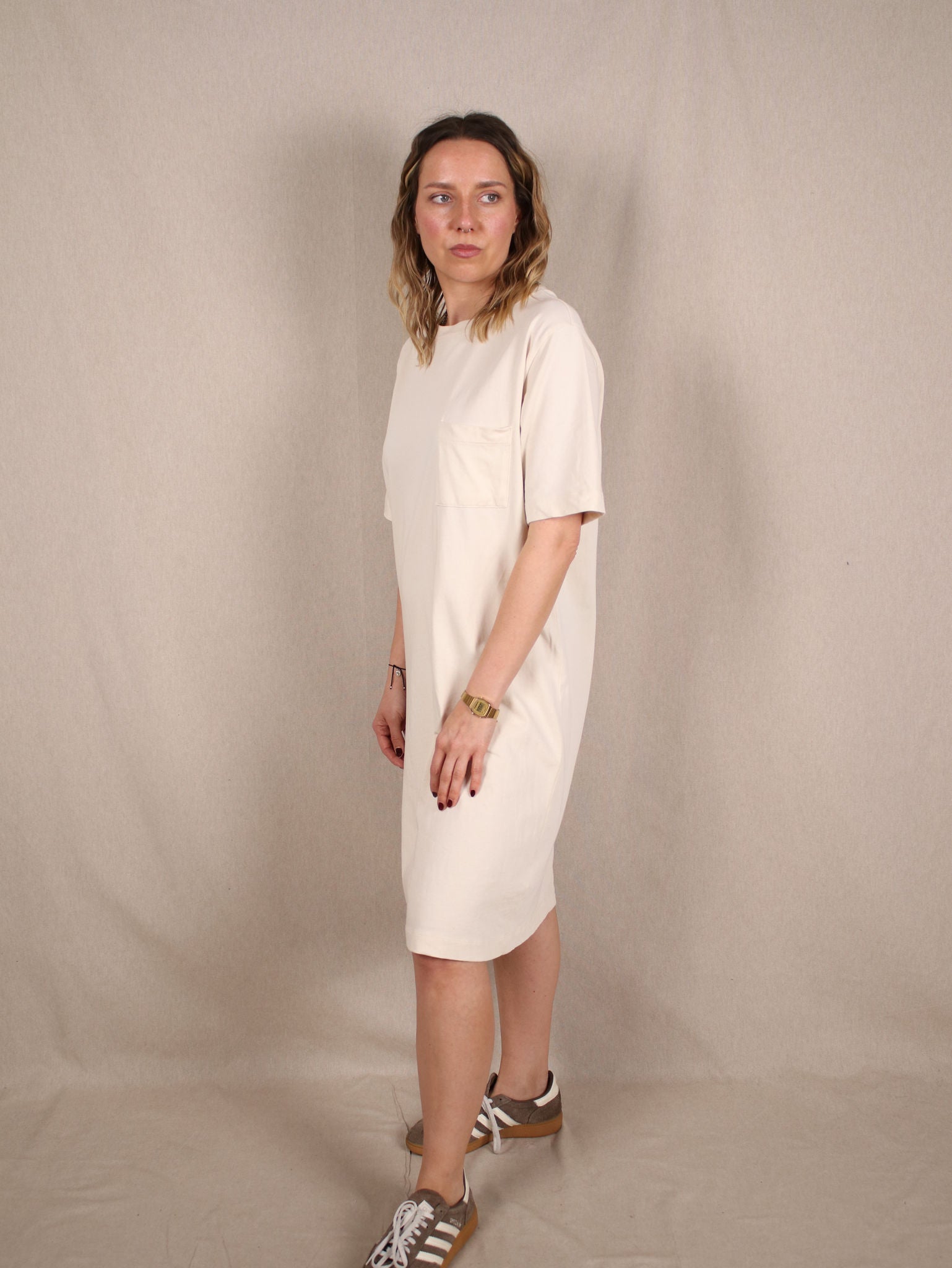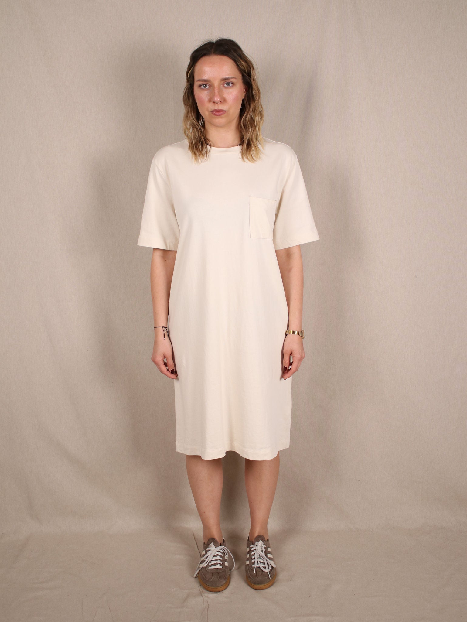 Dieses Secondhand Shirt-Kleid von Armed Angels ist der Inbegriff von lässigem Minimalismus. Aus weichem Bio-Baumwoll-Jersey in natürlichem (undyed) Vanille-Ton, fühlt es sich an wie dein Lieblings-T-Shirt - nur in Kleidform. Die Brusttasche bringt ein kleines Extra, während der Oversize-Schnitt maximalen Komfort liefert. Perfekt für entspannte Tage oder coole Streetstyle-Looks!
