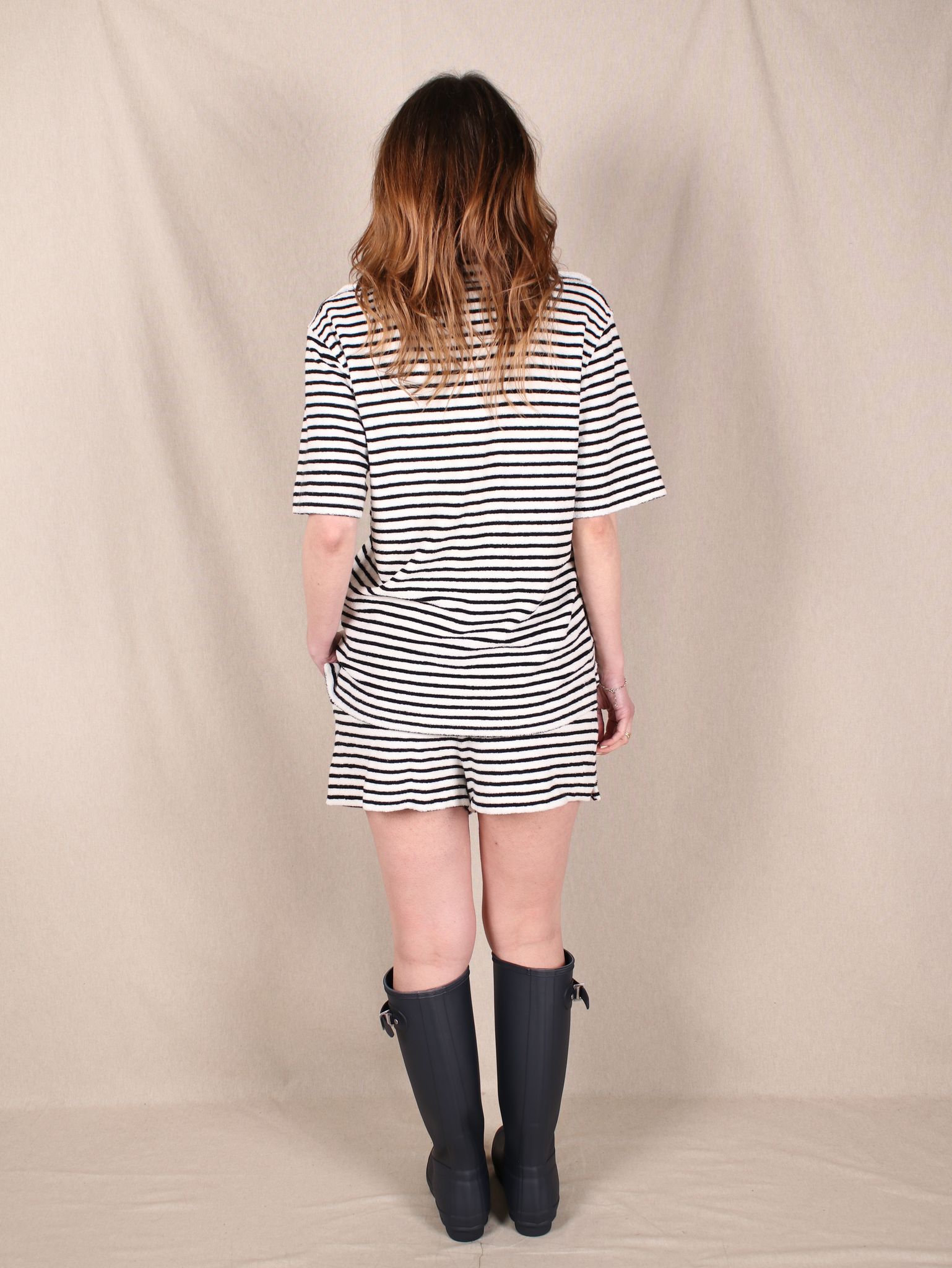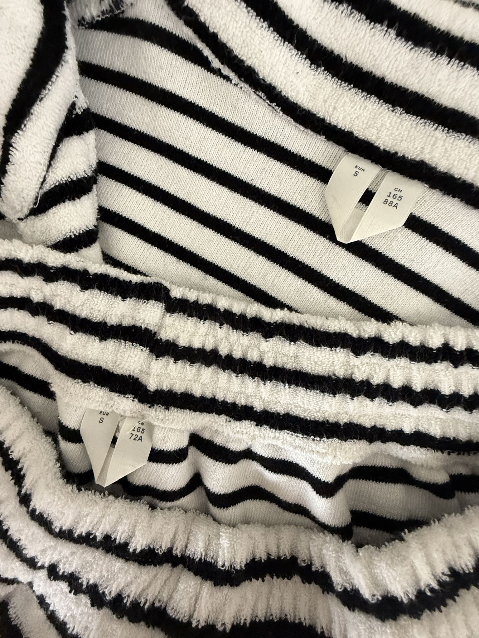 Dieses Set von Arket bringt alles mit, was du für den Sommer brauchst: soften Frottee-Stoff, maritimes Streifenmuster und eine lässige Passform zum Reinkuscheln. Ob nach dem Schwimmen, beim Stadtbummel oder auf dem Balkon - easy, cool und sowas von beach-ready.