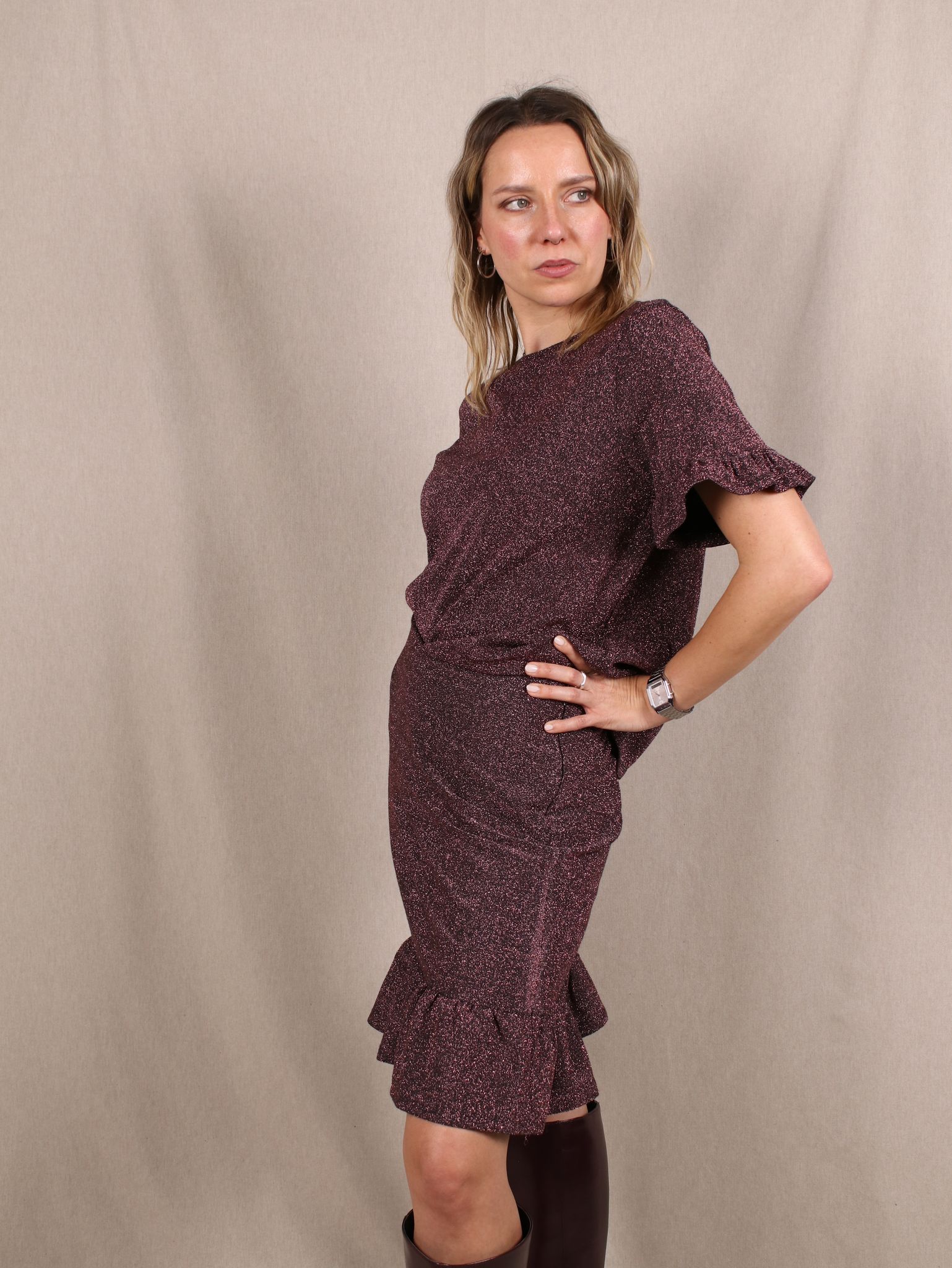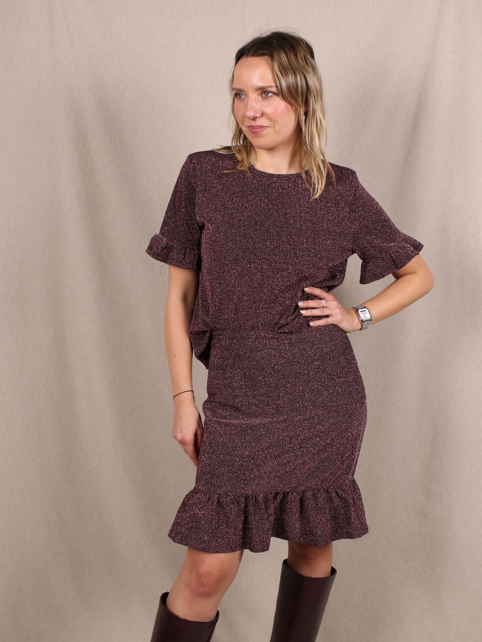 Dieses Secondhand Set von NA-KD bringt Glitzer, Rüschen und richtig gute Party-Energy in einem. Der lila Schimmer und die verspielten Details machen es perfekt für Xmas-Events oder jede Nacht, in der du aussehen willst, als hättest du den Dancefloor schon gewonnen, bevor die Musik überhaupt anfängt.