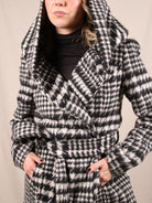 Mantel mit Hahnentritt und Kapuze