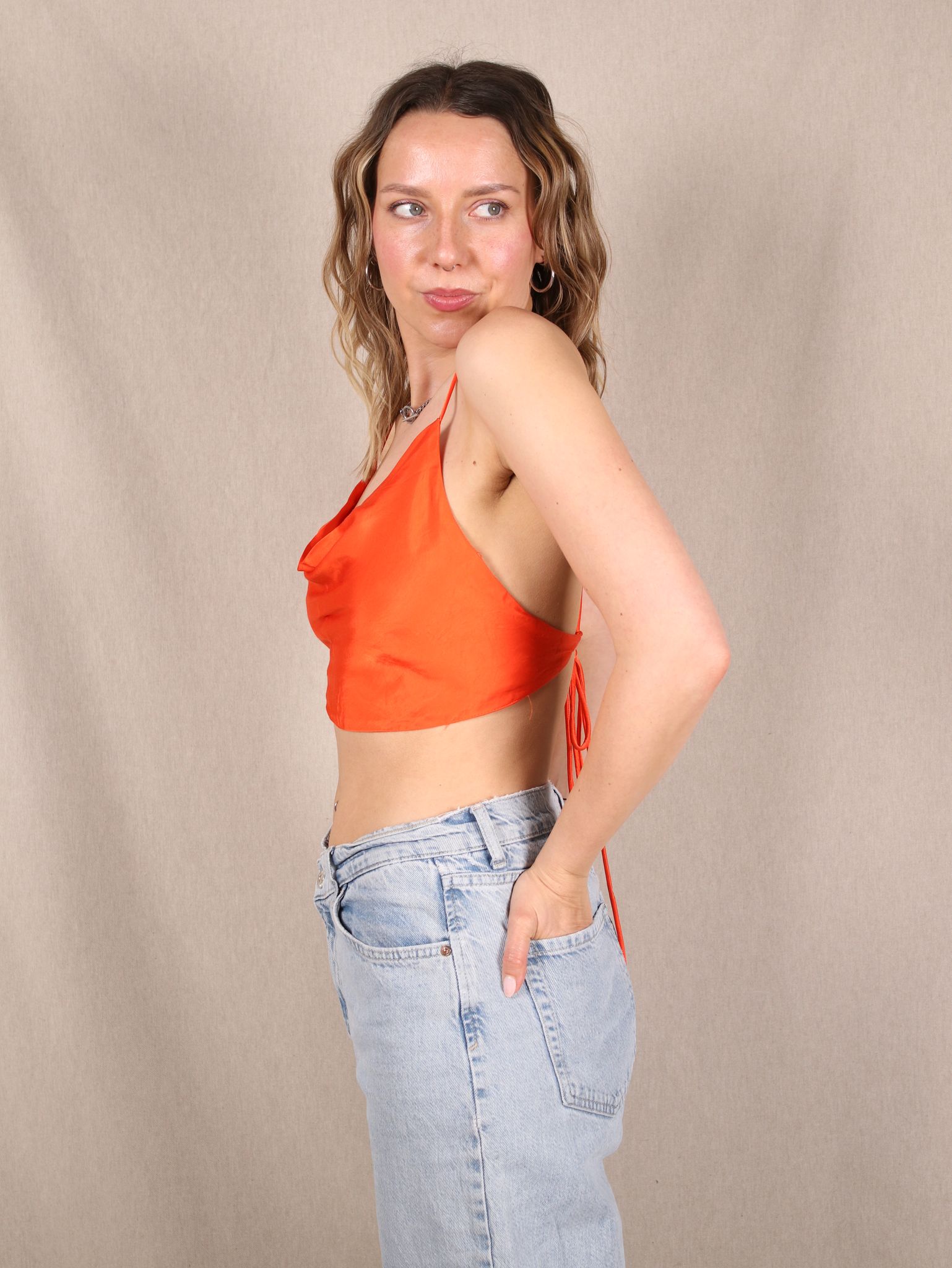 Dieses rote Neckholder-Top von Zara ist dein Call für heiße Sommernächte und Y2K-Glam. Der glänzende Satinstoff trifft auf ein raffiniertes Rückendetail zum Binden - minimal im Schnitt, maximal im Effekt. Cropped, bold und ready to party – just like your favorite 2000s anthem.