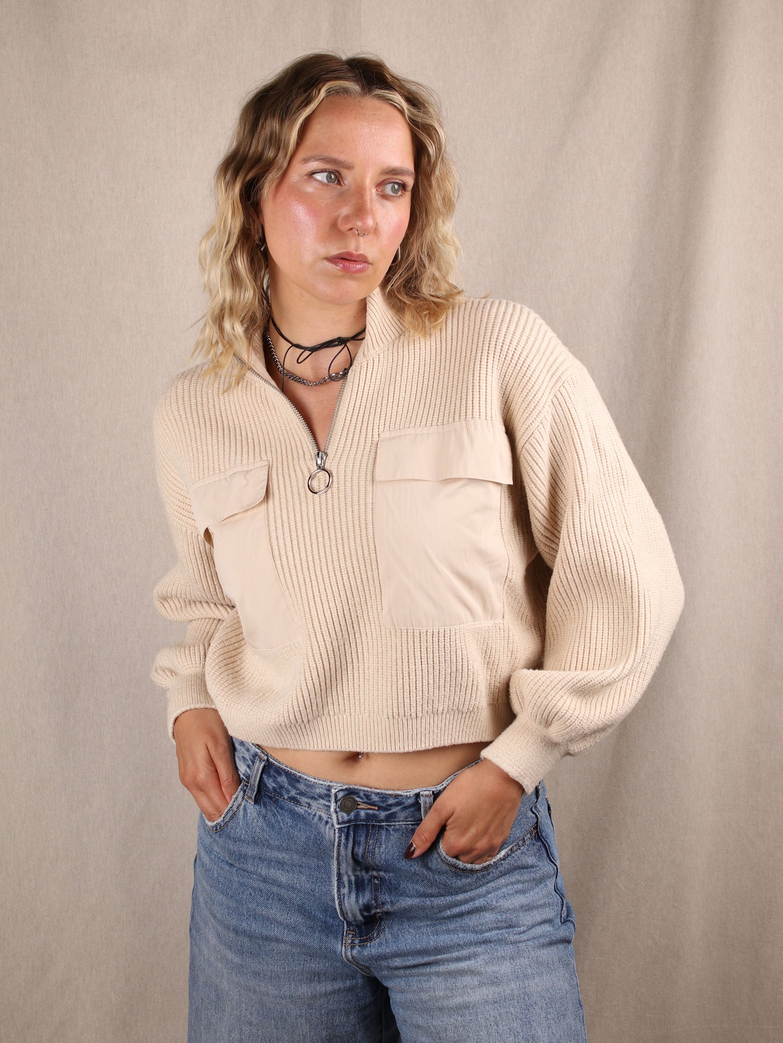 Cropped-Pullover mit aufgesetzten Nylon-Taschen
