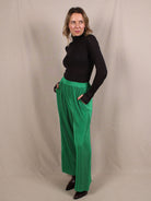 Diese Secondhand Hose von & Other Stories liefert dir leuchtend grünes Plissee, das schwingt, als würdest du in einem 90s-Dancevideo mitspielen. Die Culotte-Passform macht sie super comfy und gleichzeitig ultra stylisch, perfekt für Tage, an denen du auffallen willst, ohne viel dafür zu tun. Ein Piece, das gute Laune schon beim Anziehen mitbringt.